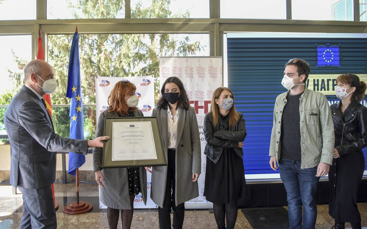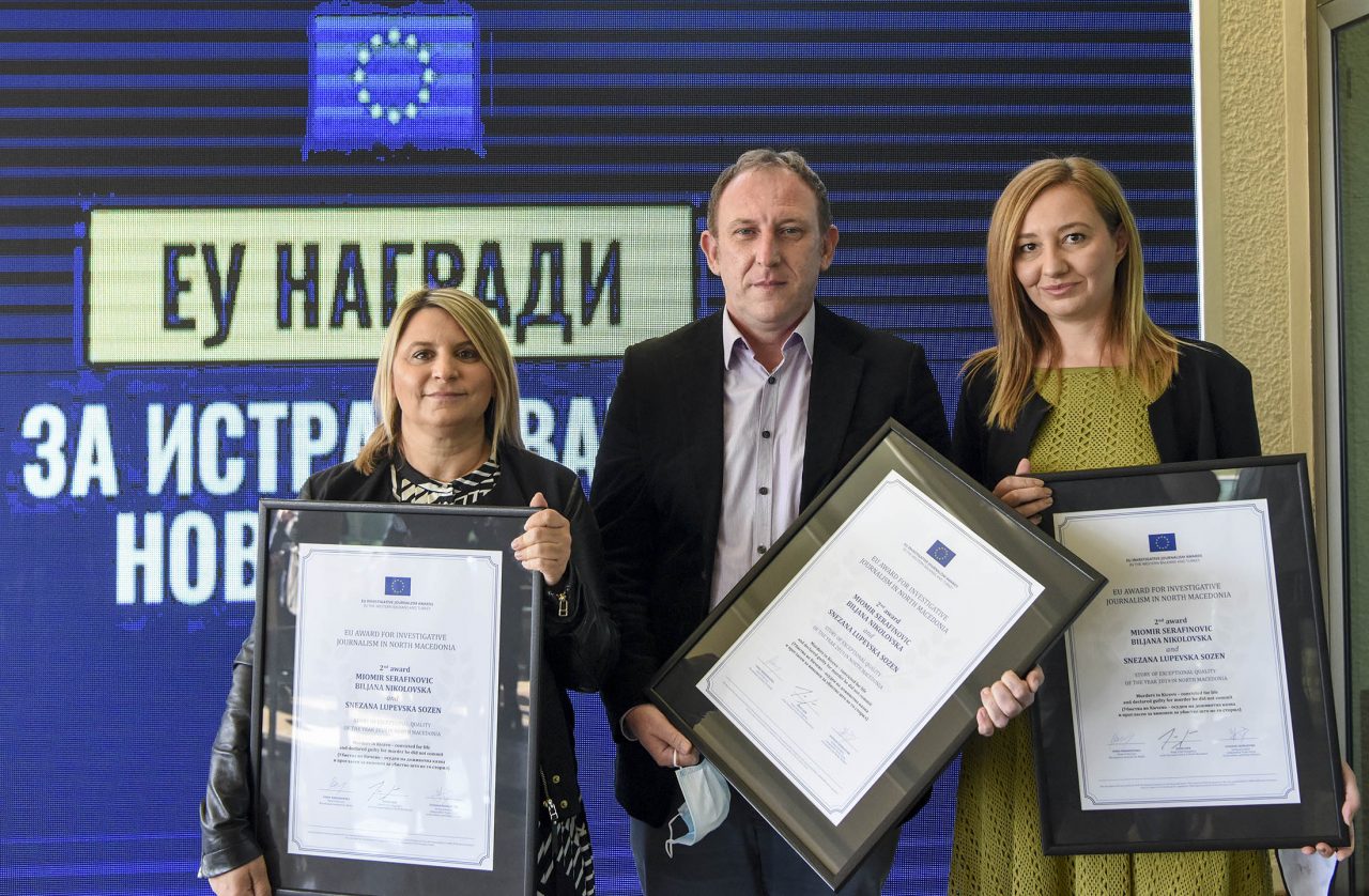 The EU Awards for Investigative Journalism for North Macedonia were presented to the winners on Thursday at the Aleksandar Palace Hotel in Skopje.